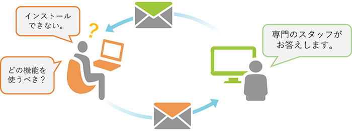 いつでも安心・快適な ArcGIS 環境をご提供するため、ライセンス認証トラブルやインストールトラブルの際に、サポート専任スタッフが専用電話にてご支援いたします。